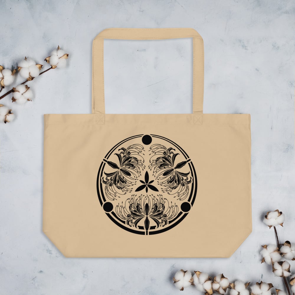 Red spider lily family crest design Large organic tote bag 彼岸花 家紋