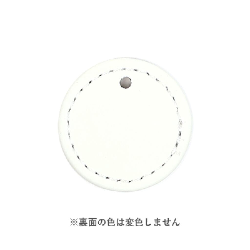 傷や汚れに強いレザー合皮を使用した円形チャームです。