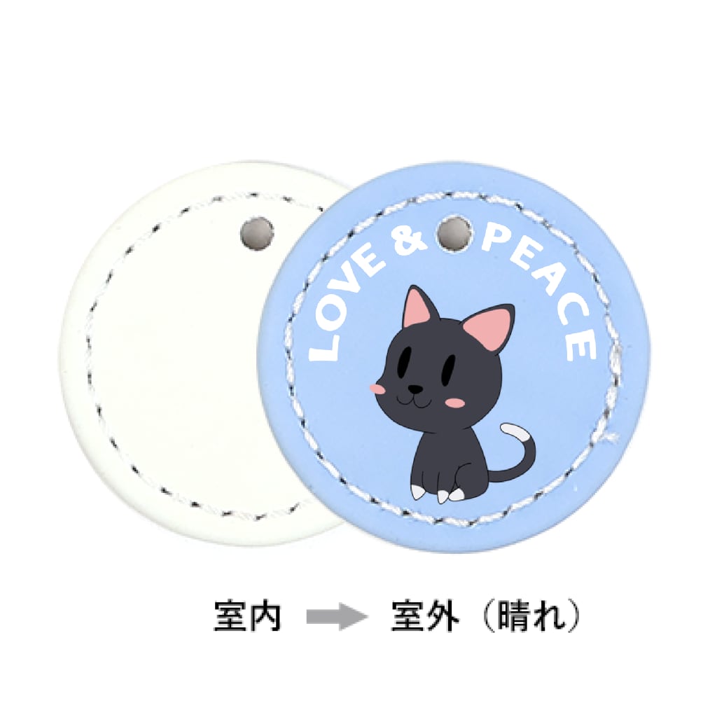 傷や汚れに強いレザー合皮を使用した円形チャームです。