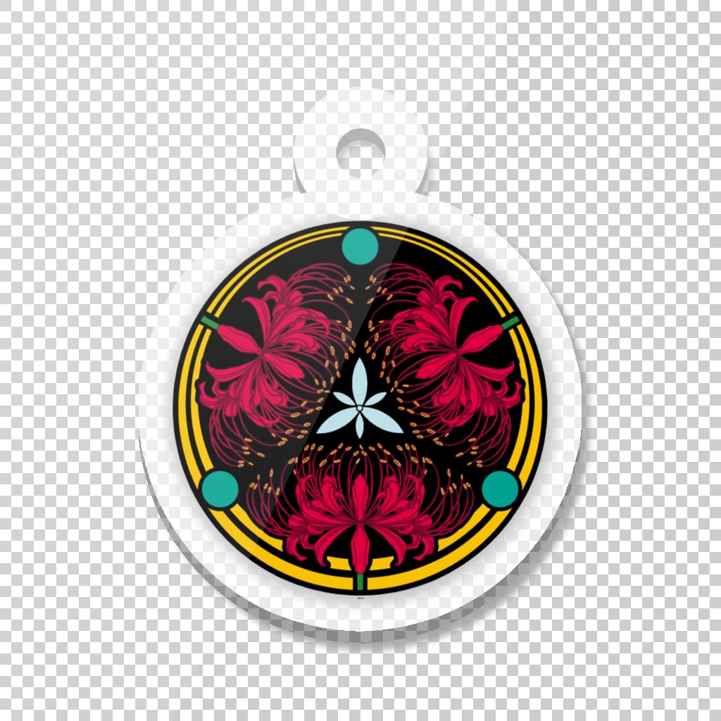 彼岸花をモチーフにした家紋のキーホルダーです。