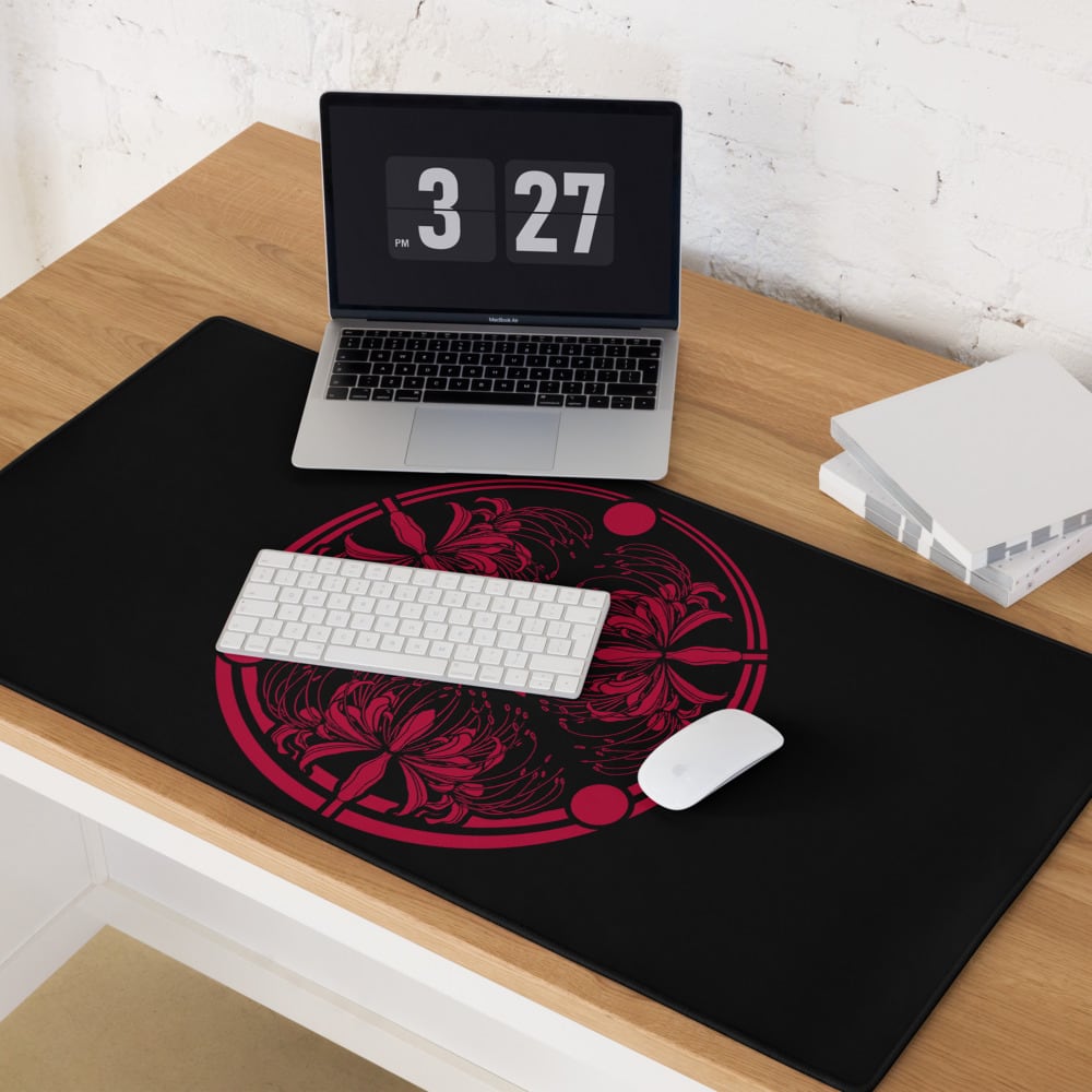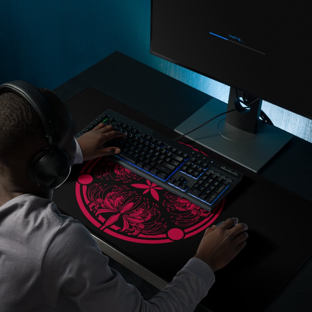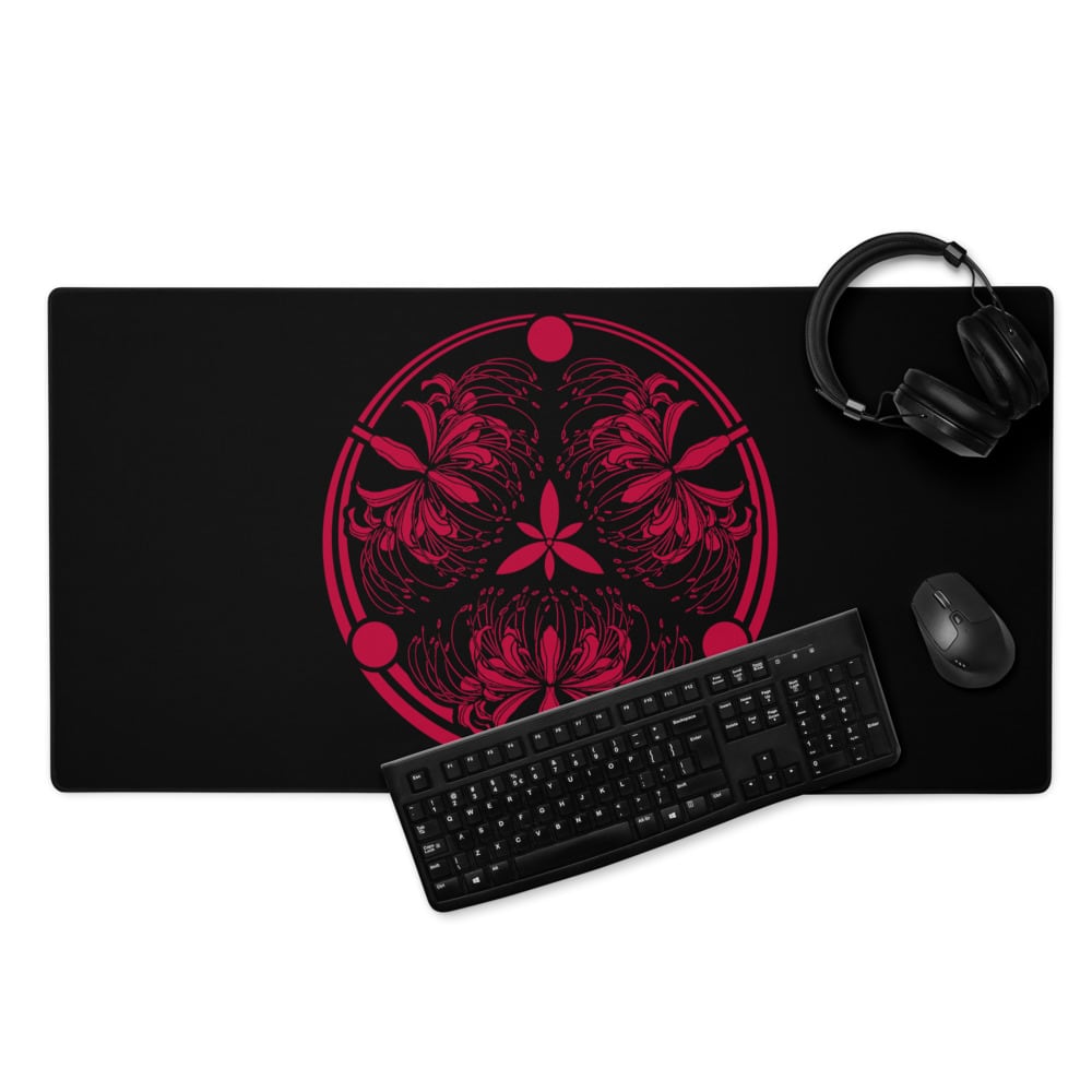 Red spider lily family crest design Gaming mouse pad Black & Red 家紋 彼岸花 黒 & 赤