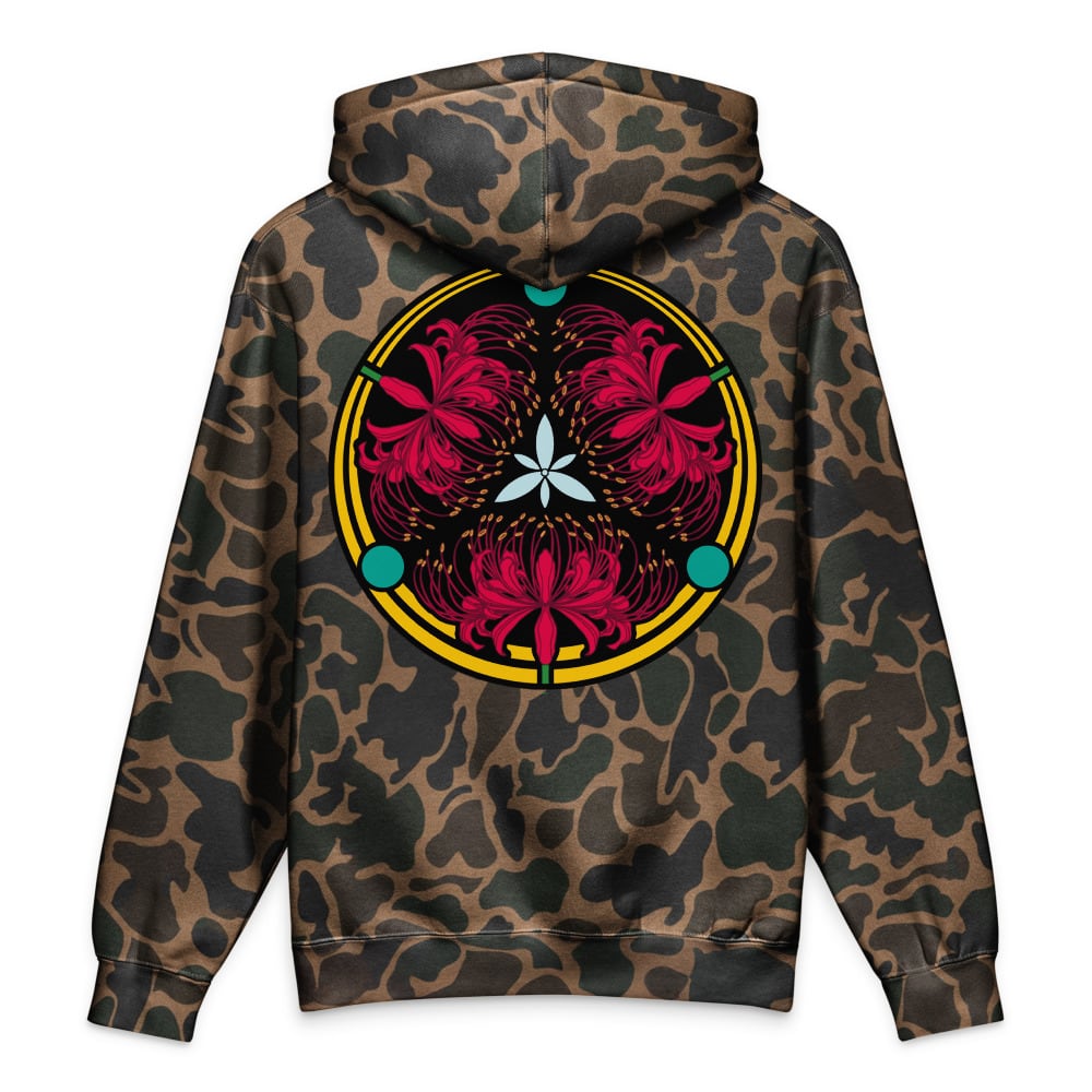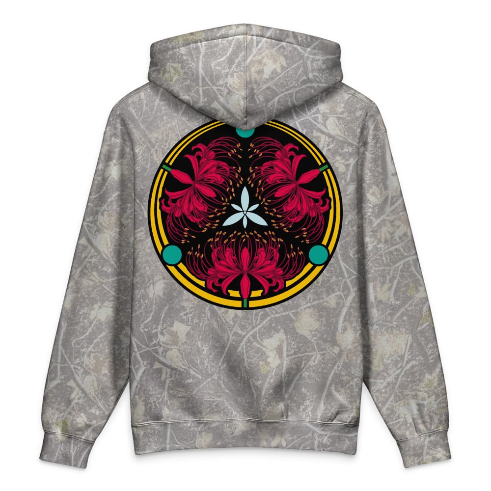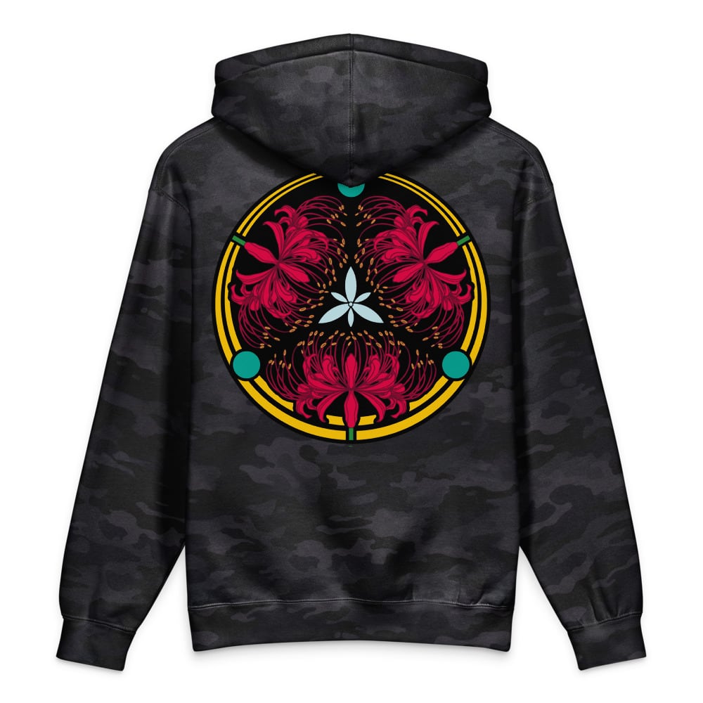 Red spider lily family crest Unisex Heavyweight Hooded Sweatshirt 家紋 彼岸花 C