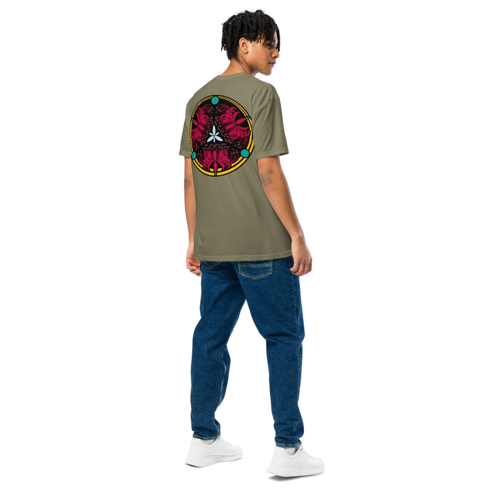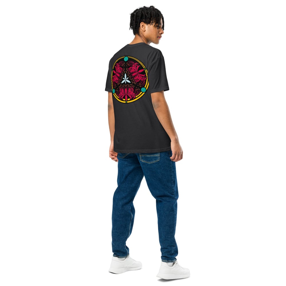 Red spider lily family crest Unisex Fitted T-Shirt - Next Level 6210 家紋 彼岸花 C